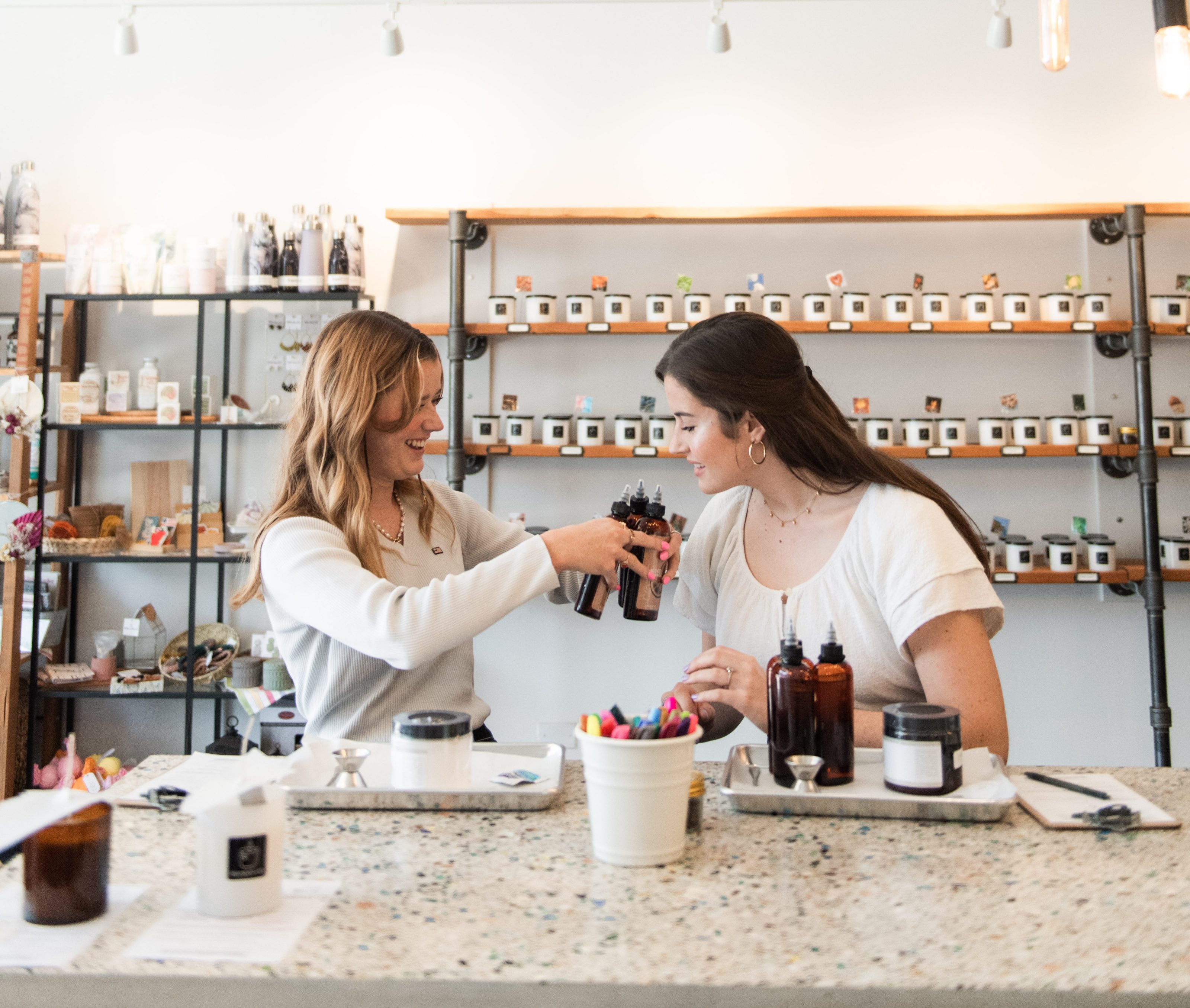 The Wick Lab offers a hands-on candle-making experience where guests create custom candles using up to three of 100 fragrances. Using 100% soy wax and clean ingredients, participants craft unique, personalized candles.